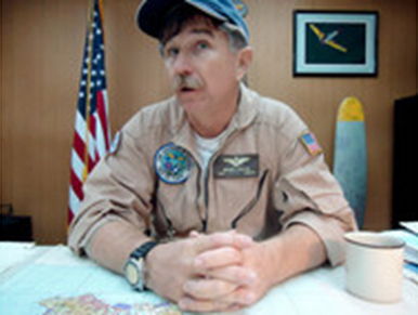 Pilot Bruce Mayes briefs author Jim Clash before their flight over Pearl Harbor. Mayes flew B-737s at Aloha Airlines for 23 years and has experience in 60 different aircraft.