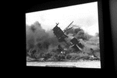 Graphic footage of the USS Arizona burning at Pearl Harbor, shown to author Jim Clash during a pre-flight briefing. The author's uncle, Donald Clash, was killed on that carrier during the Japanese attack.