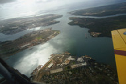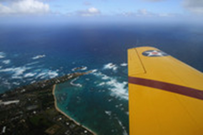 Pearl Harbor as seen from the plane's cockpit, where author Jim Clash sat. The aircraft was primarily intended for student flight training.